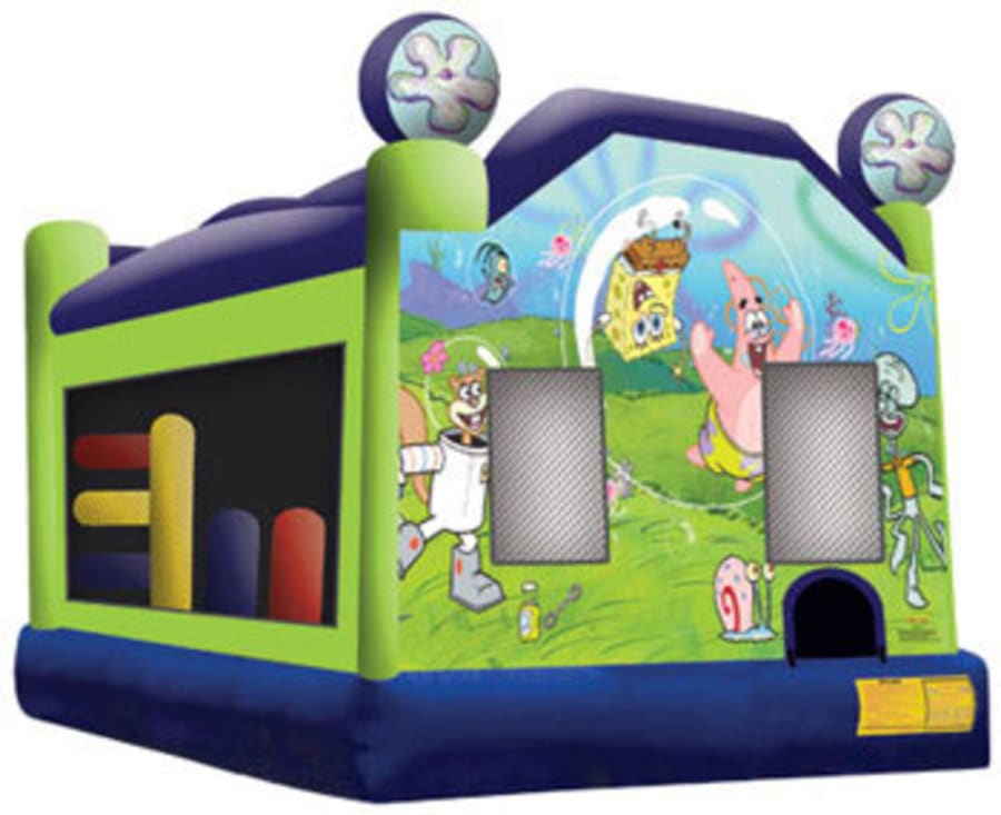 Kids and students can visit their favorite pineapple under the sea with this licensed SpongeBob Square Pants 5-in-1 combo-style bounce house. Hours of entertainment are to be had with Sponge Bob and his sidekick, Patrick in the warm waters of Bikini Bottom. Experience more than 250 feet of real imagery with SpongeBob's friends and plenty of frolicking SpongeBob graphics-sure to attract eager participants and spectators!