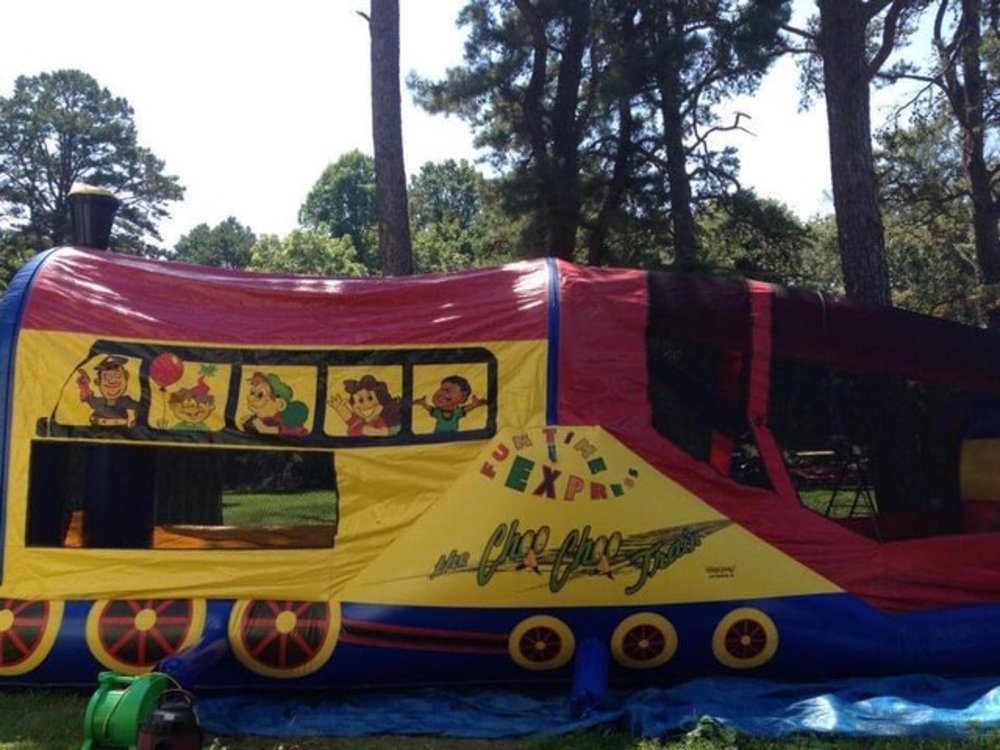 The Choo Choo Jump N Slide 3-in-1 combo bounce house will bring smiles to all youngsters dreaming of a life with trains. Adorable artwork shows the conductor and passengers in the windows, and a three-dimensional stack on top of the train keeps this combo chugging along! Kids can choose to climb, ride on the slide, or just bounce away the day on the large bounce house. Either way, each little engineer will have fun riding the rails. Add this entertaining bounce house to any event or birthday party and lay the tracks for fun.