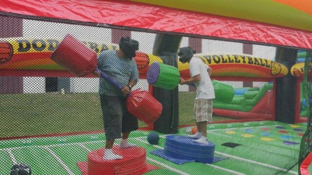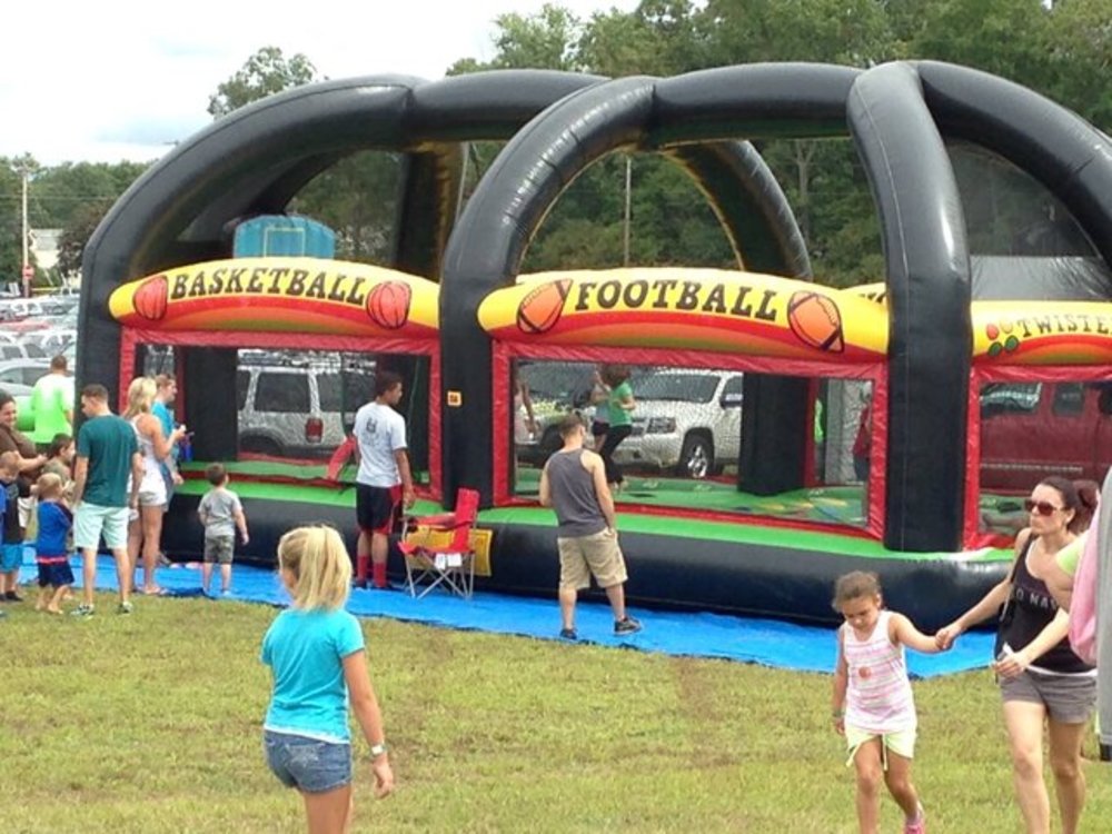 The All in 1 Sports Arena™ inflatable game will satisfy any sports fan with eight different game choices! Enjoy traditional team sports such as basketball, football, and soccer, as well as gymnasium classics like dodgeball, first n' goal, and volleyball.