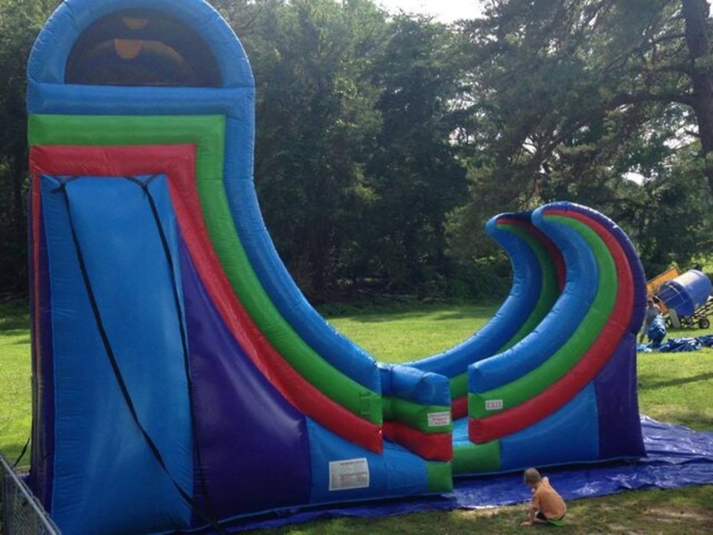 A new spin on water slide design, the Rampage⢠lets you slide up and down for an all around great time! It's halfpipe design is unlike any other waterslide! Perfect for backyard parties, company picnics and corporate events! This slide also features the "No Jump" safety feature at the top of the slide. See additional images below for a detailed look.