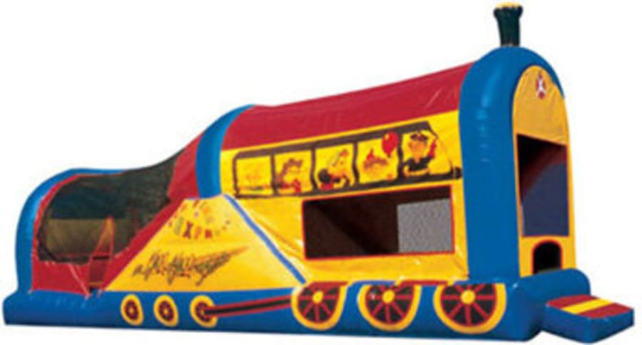 The Choo Choo Jump N Slide 3-in-1 combo bounce house will bring smiles to all youngsters dreaming of a life with trains. Adorable artwork shows the conductor and passengers in the windows, and a three-dimensional stack on top of the train keeps this combo chugging along! Kids can choose to climb, ride on the slide, or just bounce away the day on the large bounce house. Either way, each little engineer will have fun riding the rails. Add this entertaining bounce house to any event or birthday party and lay the tracks for fun.